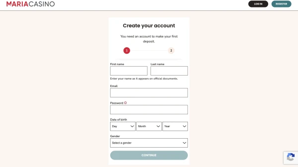 - Fyll inn personopplysningene dine slik at Maria Casino-kontoen samsvarer med identiteten din.
